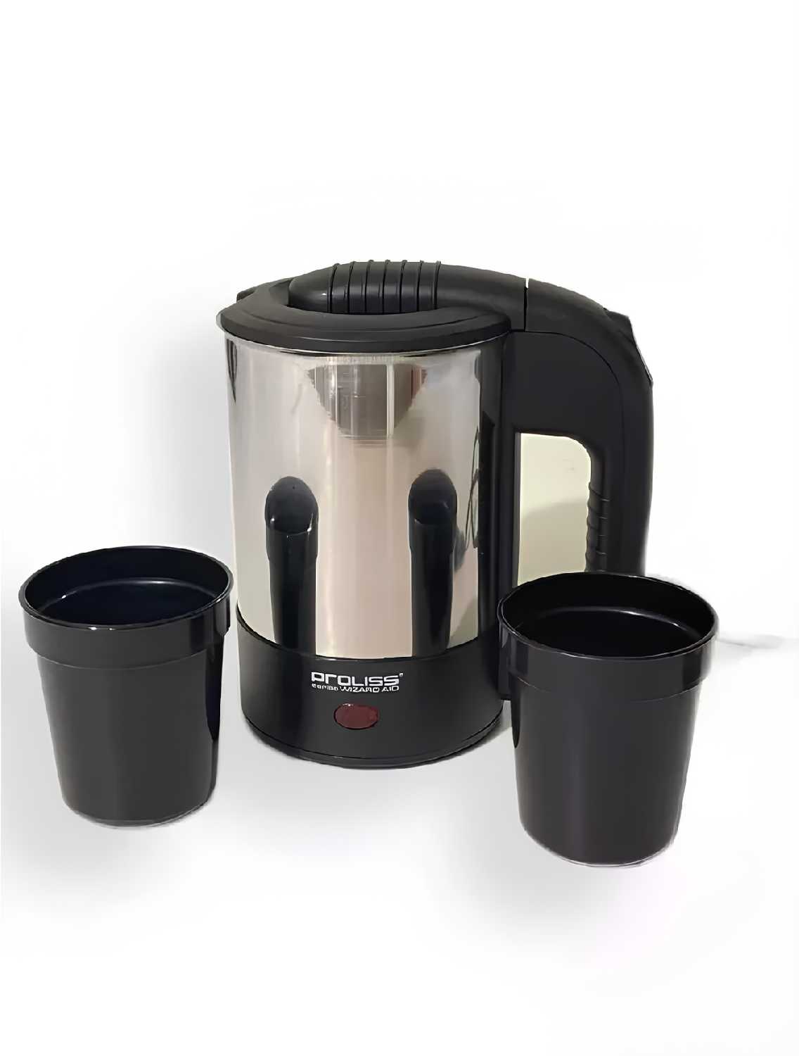 - + Работает, вода закипает минут за пять. В комплекте 2 пластиковых стакана