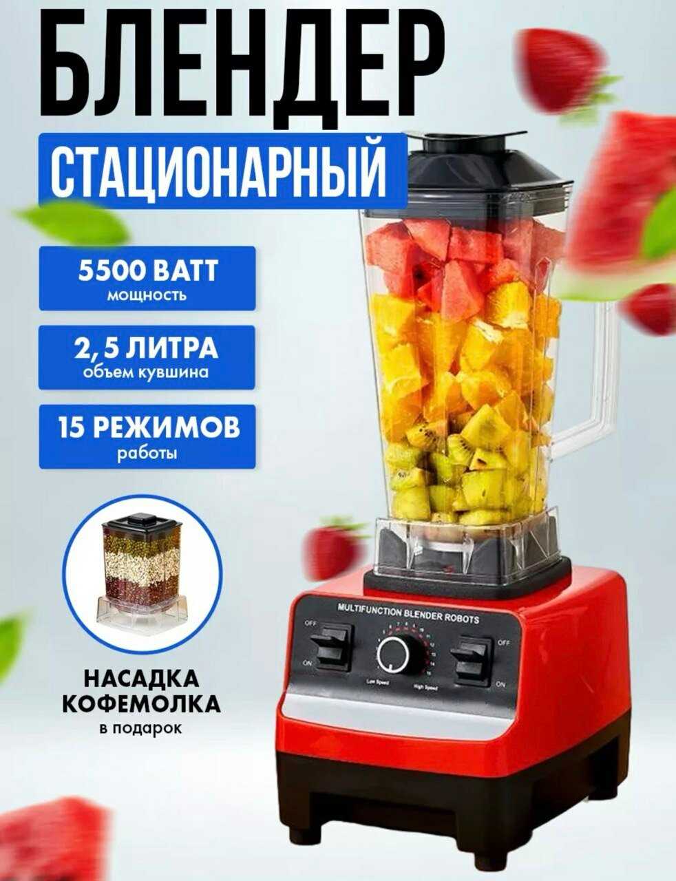 Отзывы о Блендер стационарный для смузи и коктейлей с измельчителем, 2 в 1, объем 2,5 литра, 5500 Вт