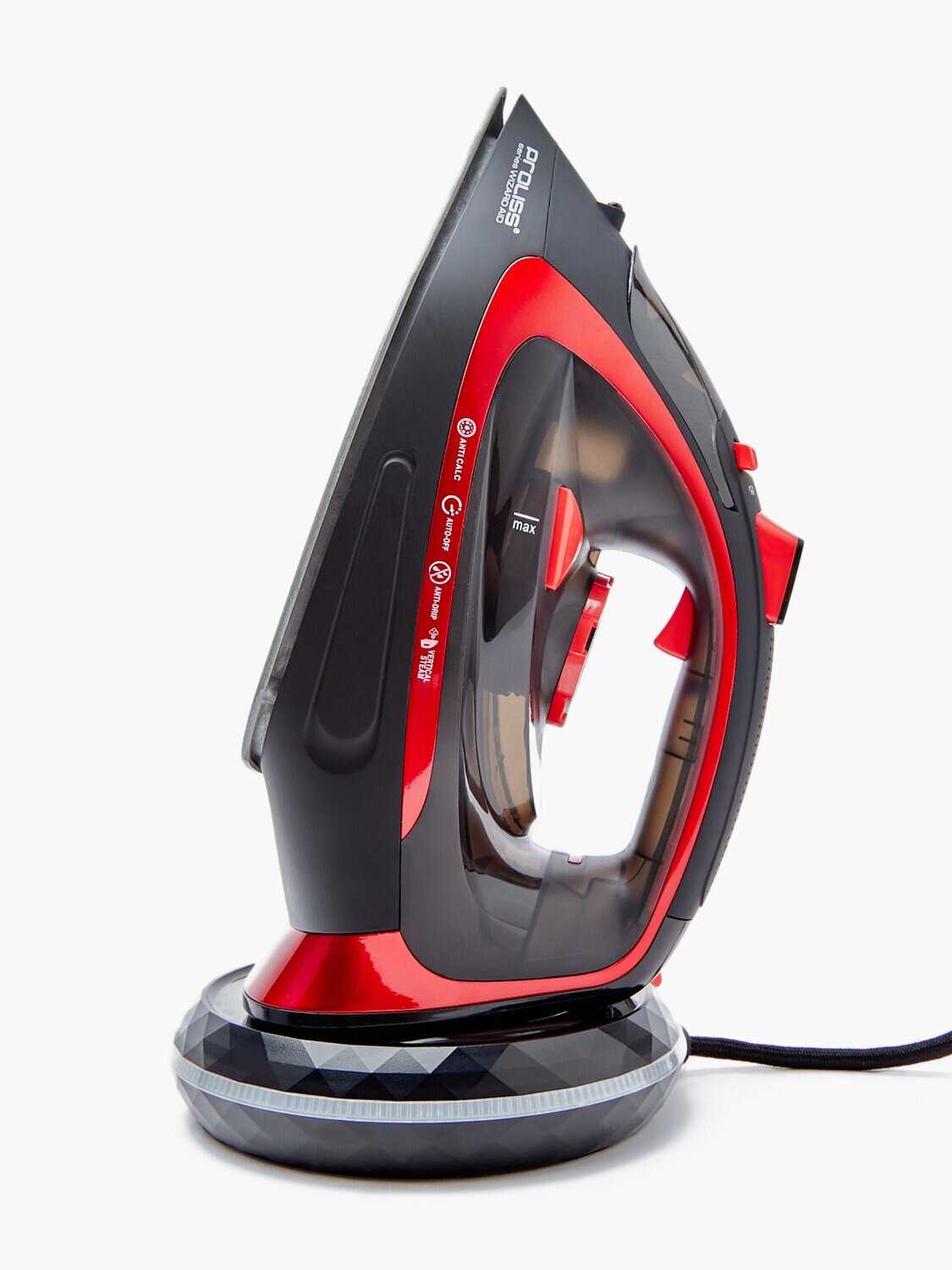 - Узкая рукоятка с противоскользящим покрытием снижает усталость кисти при длительной глажке.