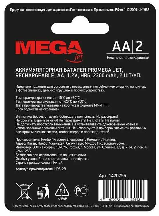 Характеристи ProMega jet АА/HR6 Ni-MH Rechargeable 2300mAh (бл/2шт)