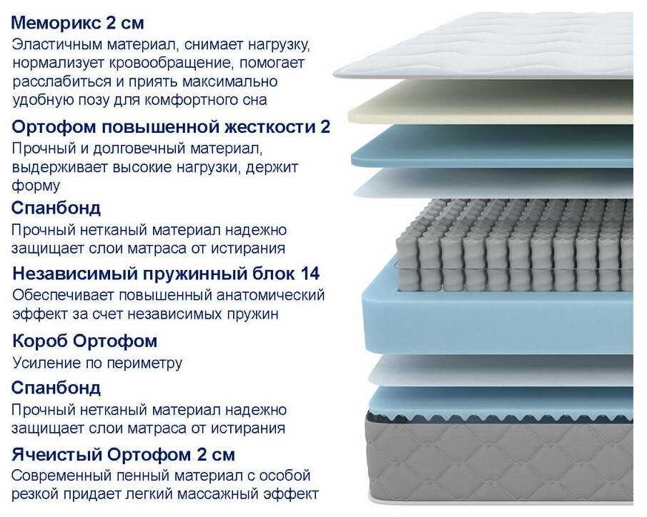 - наполнитель: комбинированный (Меморикс 2см + Ортофом повышенной жесткости 2см + Спанбонд + EVS500SS TPS 14см+рамка + Спанбонд + Ортофом ячеистый 2см + Короб Ортофом)