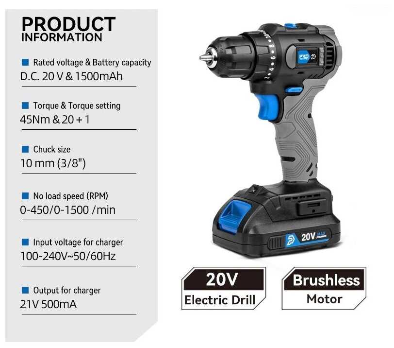 Характеристи PROSTORMER Дрель-шуруповерт (PTET00902A)