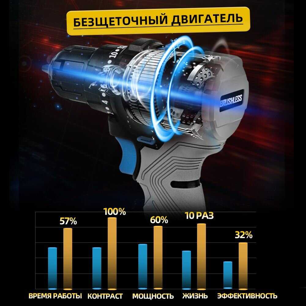 - - Непривычно было услышать шум от двигателя, хотя в описании сказано, что он безщеточный. Но потом привык, сверлит и закручивает винты отлично.