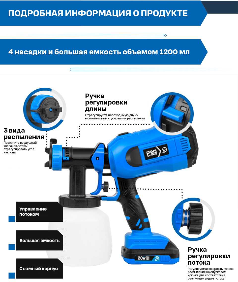Особенности : | регулировка диаметра сопла |