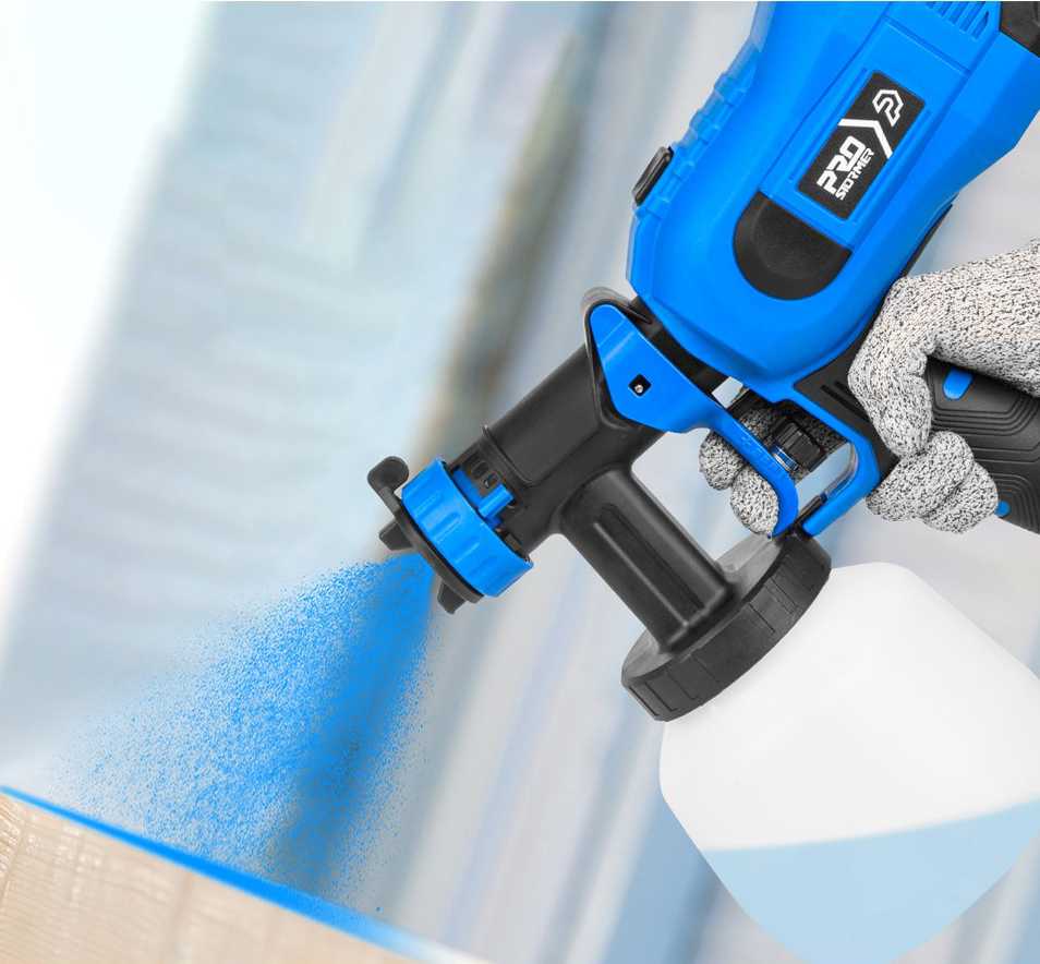 - + Удобно пользоваться, красит очень хорошо, есть комплект сопел от маленького до большого, краска в банке на стенках не остается