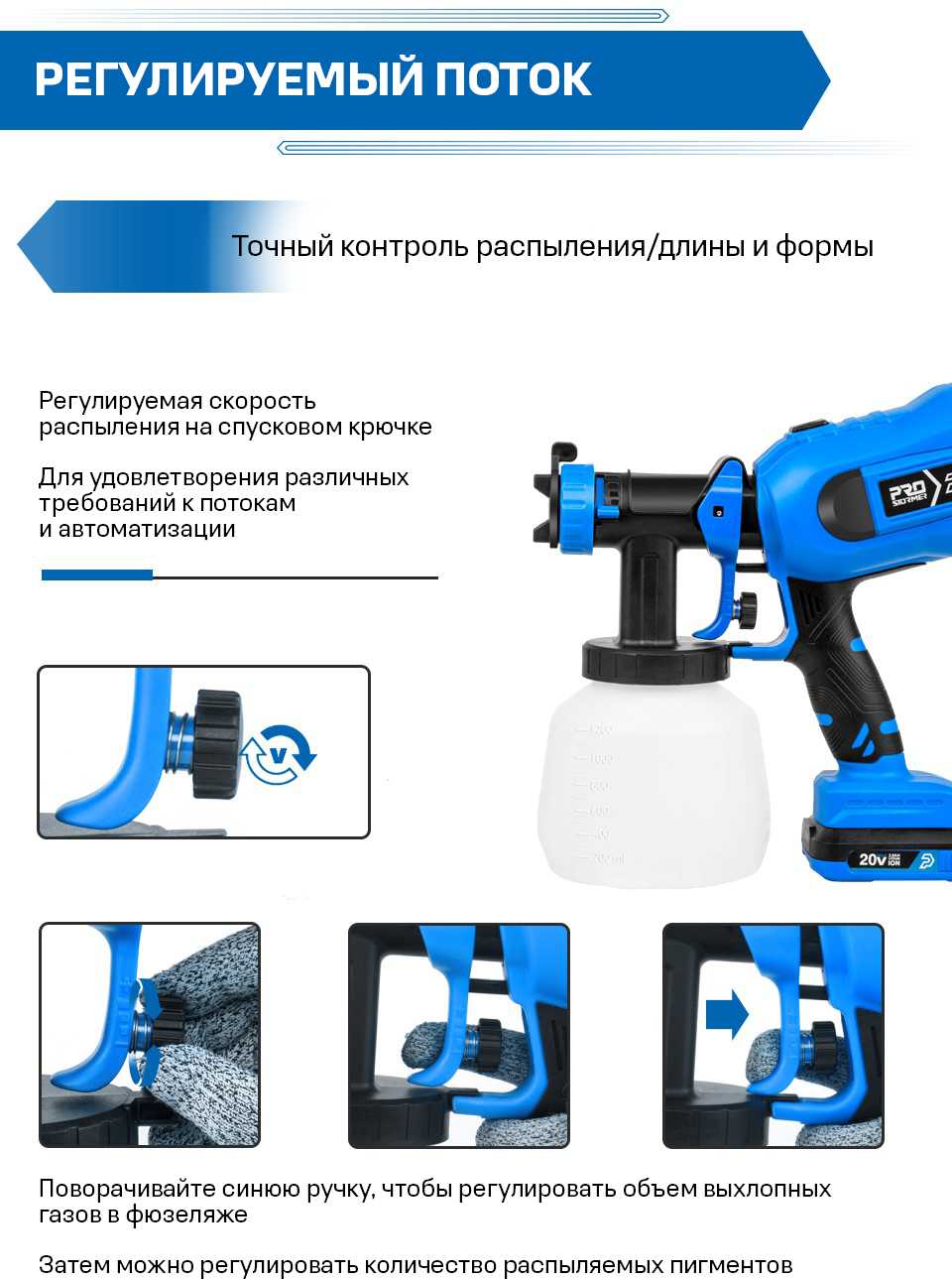- особенности: регулировка диаметра сопла