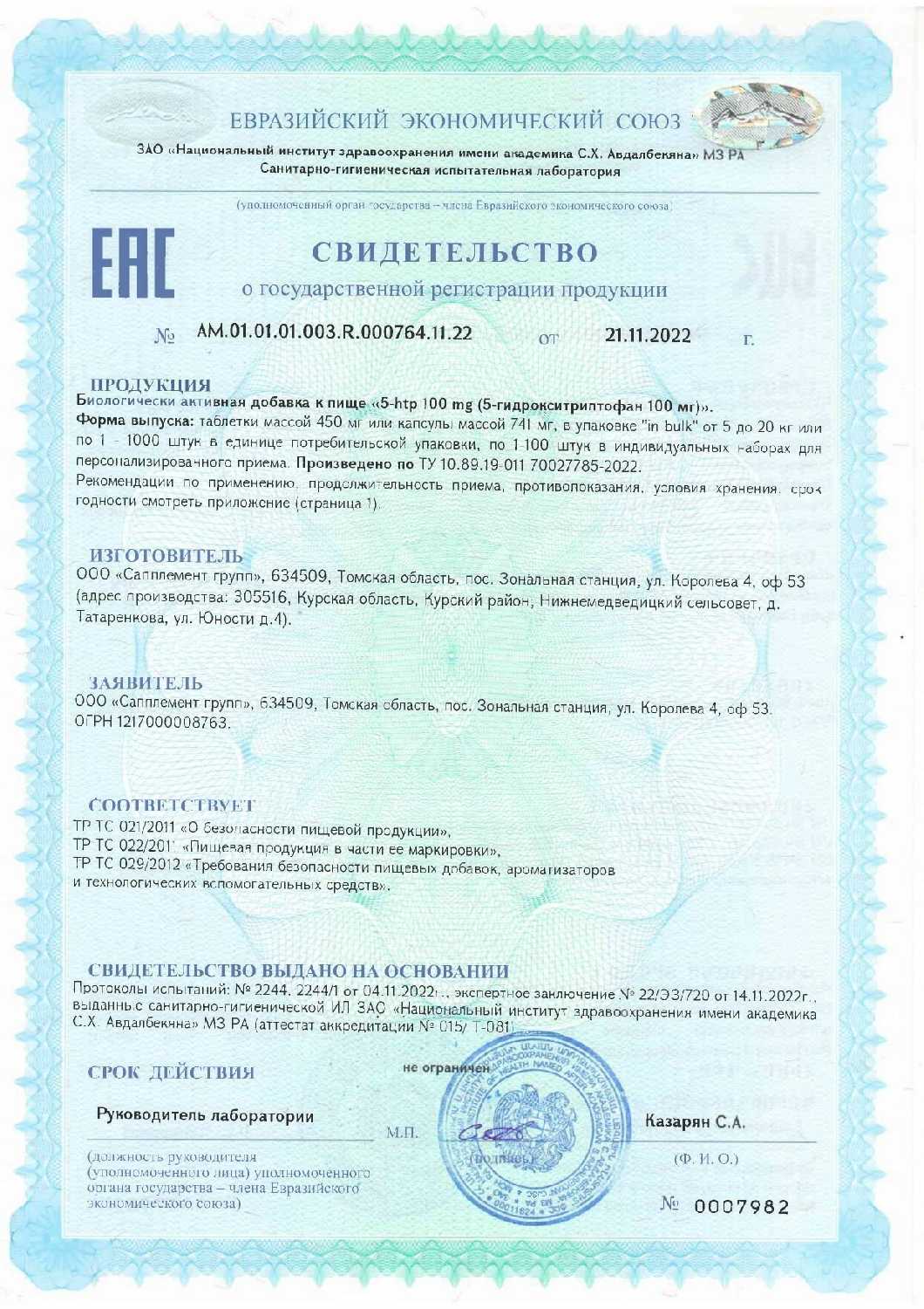 Основной ингредиент : | 5-гидрокситриптофан |