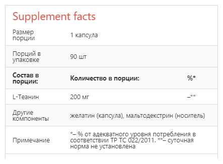 - Не указан источник сырья (синтетический или натуральный теанин), что критично для пользователей, избегающих ГМО-продуктов.