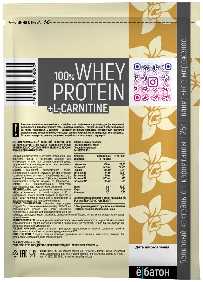 Ё|батон Белковый коктейль + L-Carnitine, (ванильное мороженое, шоколад, банан-клубника) 9 пакетов по 25г