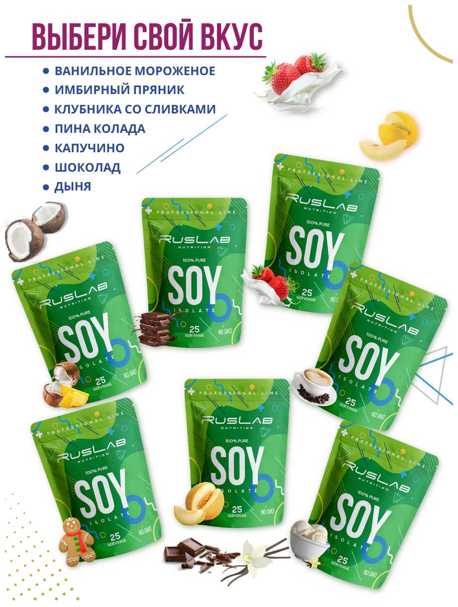 7.8/10 балловRusLabNutrition Соевый изолят SOY ISOLATE,протеин для вегетарианцев и веганов (800 гр),вкус пина колада