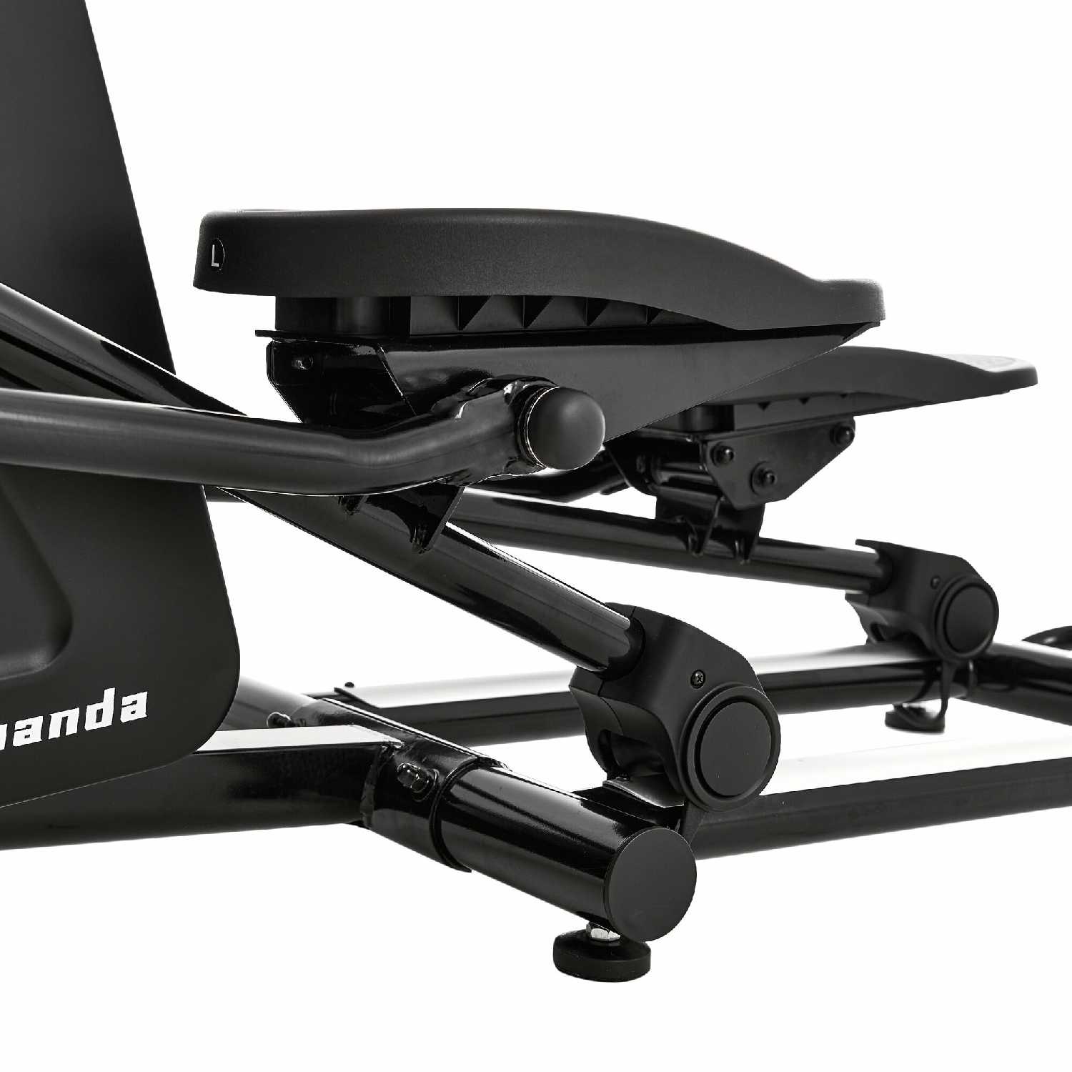 Педали с бортиками предотвращают соскальзывание ноги (размер 27х15 см), а рифленые прорезиненные рукоятки обеспечивают надежный хват. Пользователи особо отмечают Q-фактор 15 см – комфортное расстояние между педалями, снижающее нагрузку на тазобедренные суставы. -