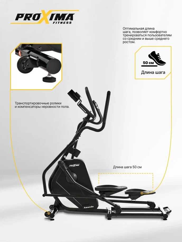 В целом, за свои деньги это отличный вариант для домашних тренировок. Рекомендую Proxima Amanda тем, кто ищет надежный, компактный и функциональный эллиптический тренажер. За месяц использования я уже заметил улучшение выносливости и общего самочувствия. Спасибо Proxima за качественный продукт!