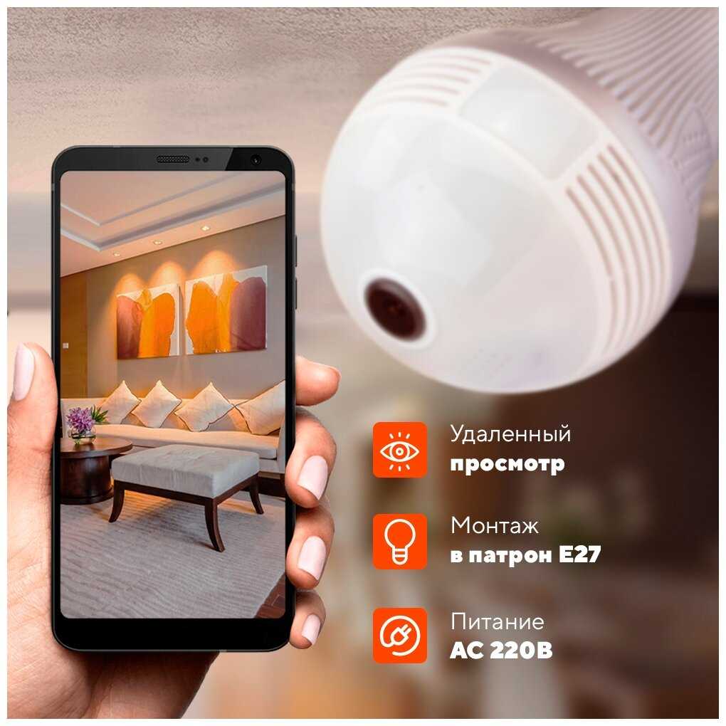 - + Да камера панорамная , установить можно везде, где есть цоколь Е 27, то есть обычный цоколь куда вставляется лампочка. Понятный интерфейс, быстро всё подключается.Срабатывает на движение , ик не заметен