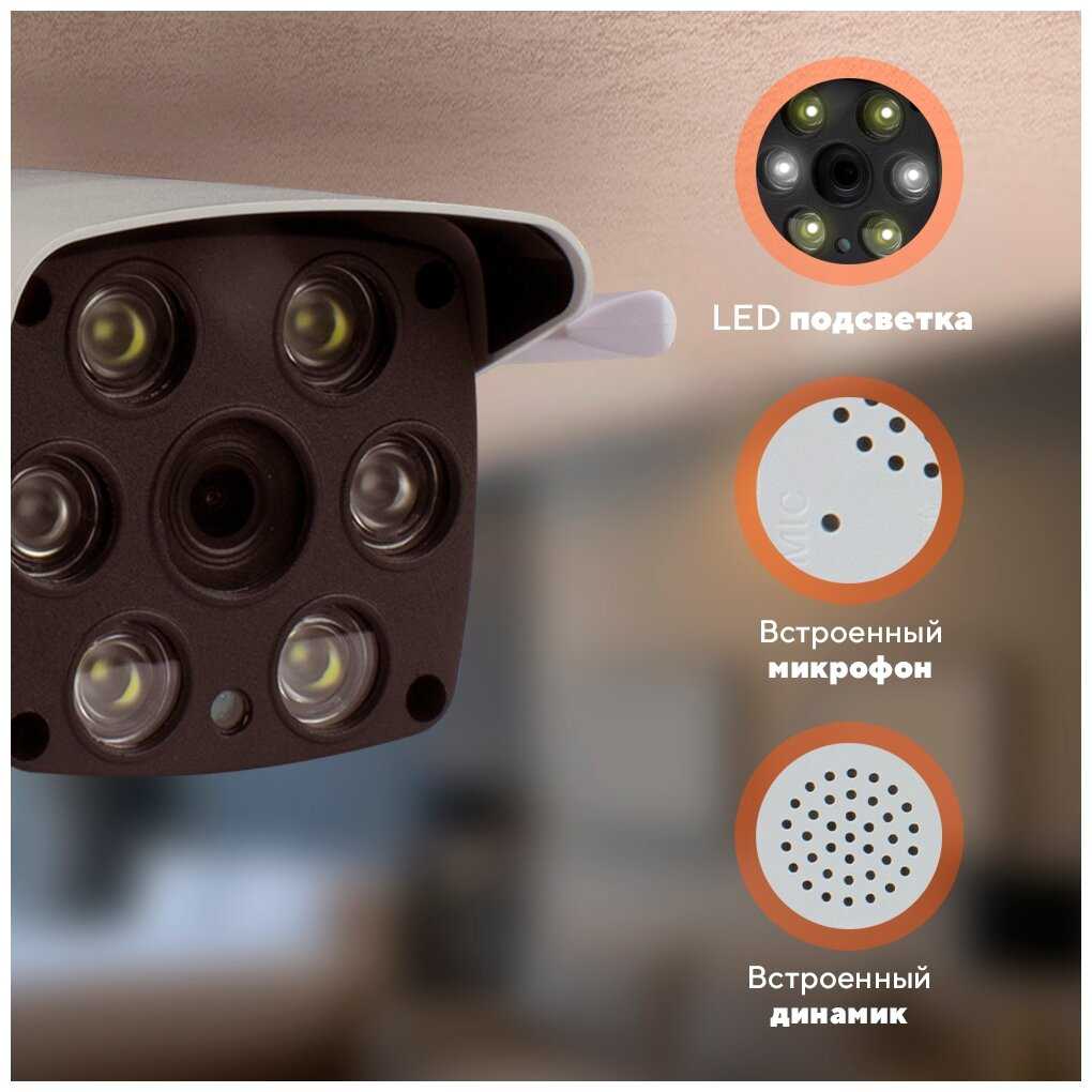 - 6 ИК-светодиодов обеспечивают чёрно-белое изображение до 10–15 метров, а LED-подсветка активируется для цветной съёмки в темноте.