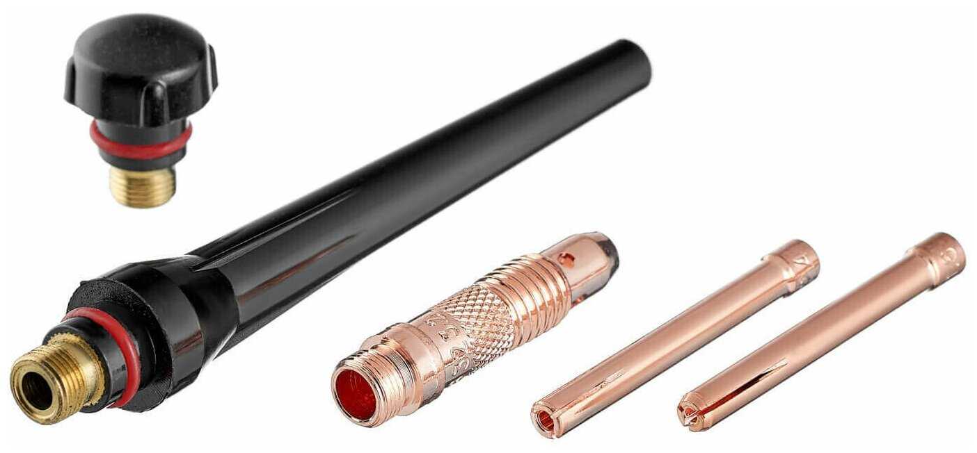 - + Комплект полный, но могли бы один вольфрамовый электрод положить.
