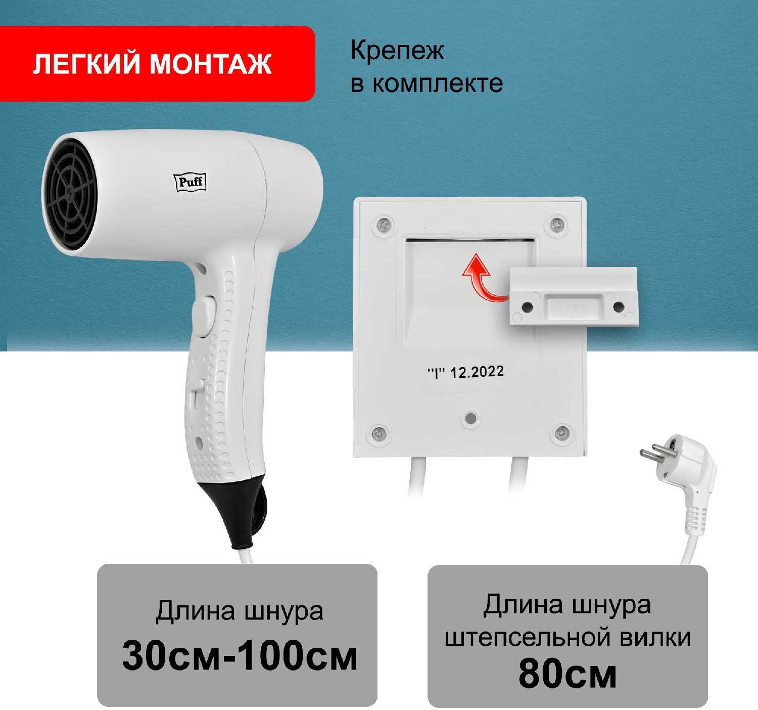 Отзывы о Фен для волос настенный Puff Puff-1205 [1405.035] [1,2 кВт]