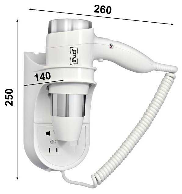 Достаточно сложно подобрать место крепления фена с учетом крайне короткого шнура между креплением и самим фено.