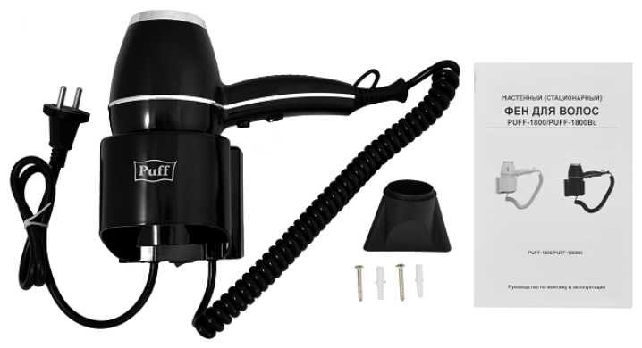 | Подробная комплектация : | Фен, Крепежный элемент, Крепеж, Насадка, Паспорт изделия. |