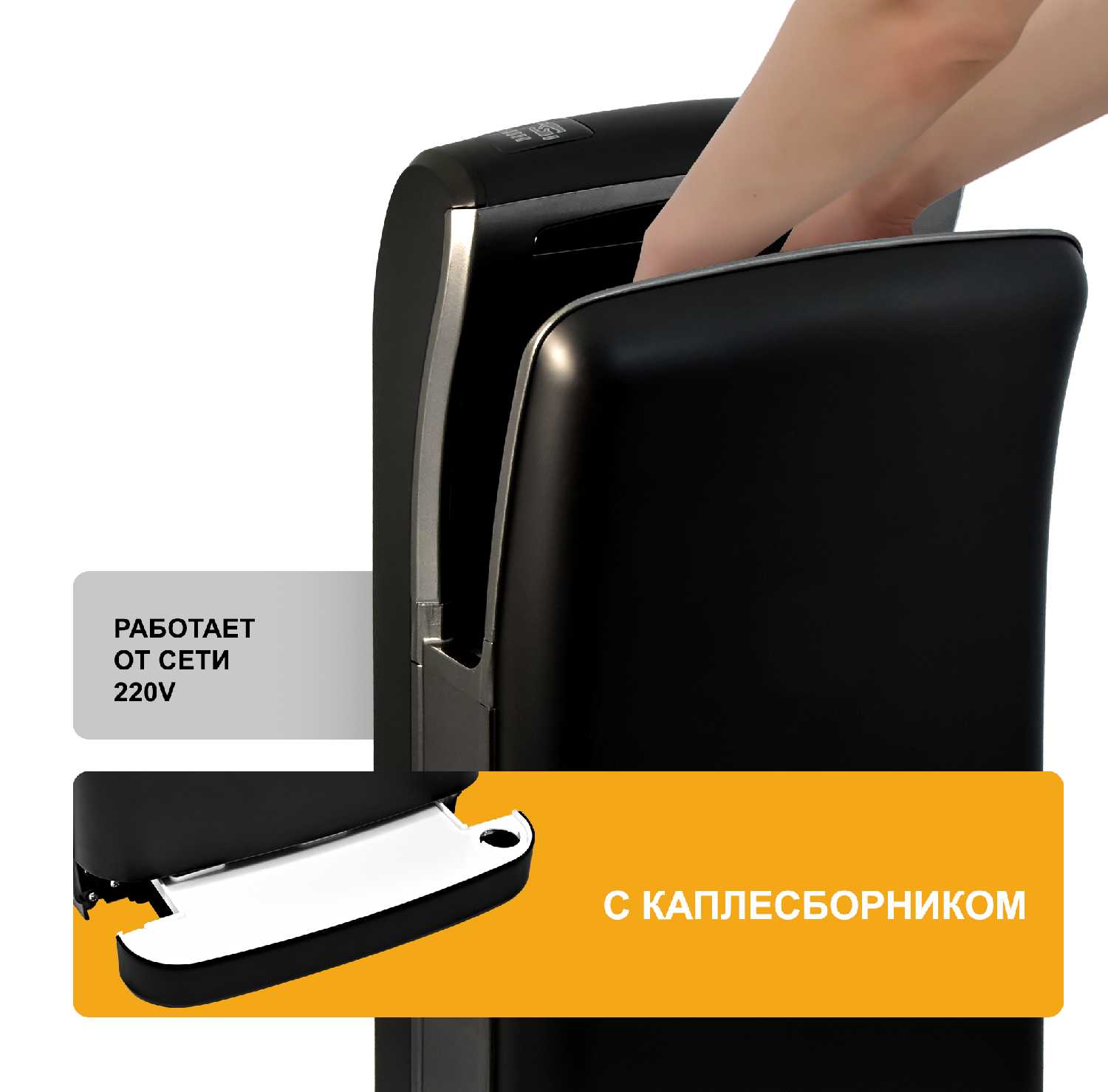 - + Хорошая сушилка для рук , быстро сушит и занимает мало места, есть каплесборник