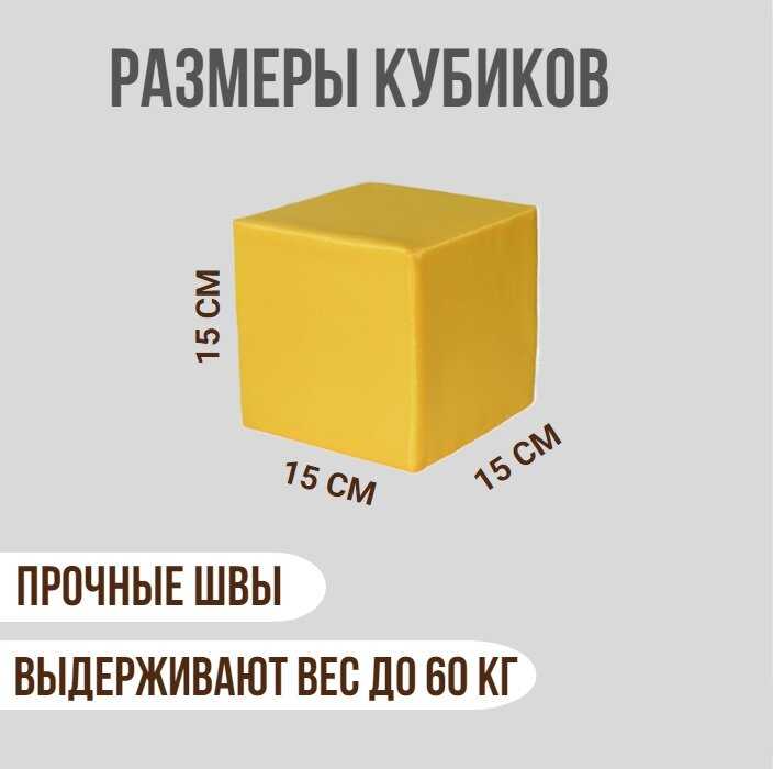 Комплектация : | Набор состоит из 6 кубиков. Размер кубика 20 х 20 х 20 см. |