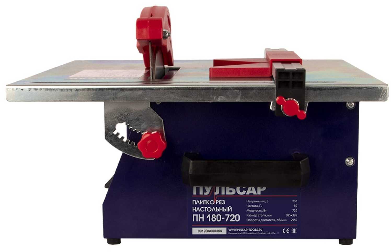 | Дополнительная информация : | Настольный плиткорез ПУЛЬСАР ПН 180-720 791-578 служит для быстрой и точной резки в размер заготовок из керамики, натурального и искусственного камня. Подходит для обработки облицовочной, напольной и тротуарной плитки. Благодаря отсутствию бортиков возможно пиление изделий большой длины. Функция наклона рабочего стола позволяет осуществить резку под углом до 45°, что значительно расширяет возможности оборудования. Емкость для воды в нижней части корпуса станка обеспечивает охлаждение алмазного диска и снижение образования пыли во время работы. |