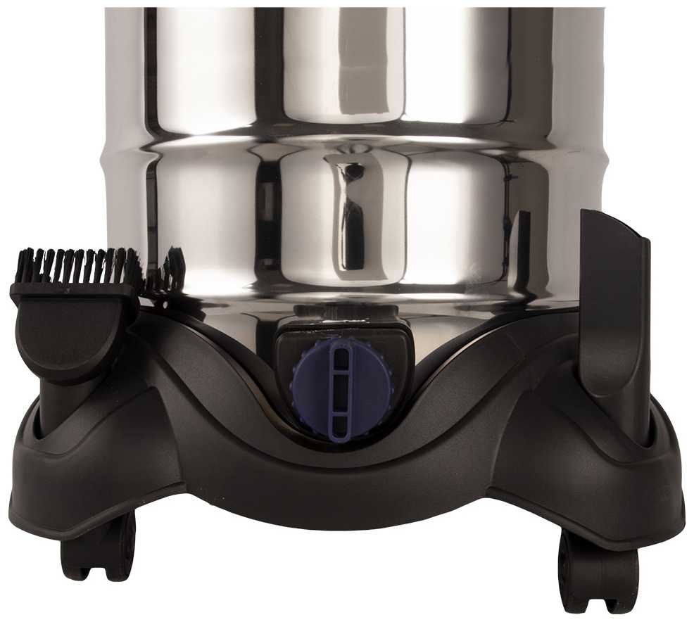 - + Простой, компактный, выглядит добротно, хорошая мощность, нера-фильтр, есть розетка для подключения инструмента, в комплекте разнообразные насадки, в свободном доступе мешки-синтетические. На колёсиках, хорошо катится, ёмкость бака.