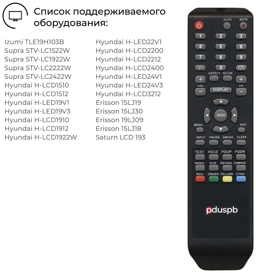 - назначение: для Пульт подходит к телевизорам: Izumi TLE19H103B