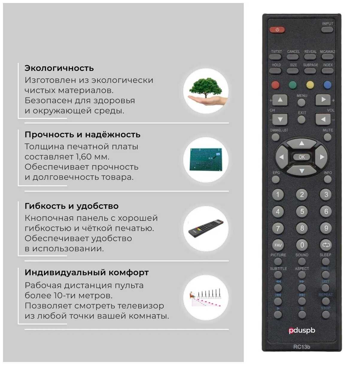 - назначение: для 19SECAP пульт для следующих моделей: Starwind SW-LED32SA300 Starwind SW-LED40SA300 Starwind SW-LED43UA400 Starwind SW-LED43SA300 Starwind SW-LED40SA301 Econ EX-32HS002B Econ EX-32HS010B Econ EX-40FS001B Econ EX-40FS006B Denn LE32DE85SH Denn LE39DE80BH Denn LE40DE85SH Denn LE50DE85SUMAX Denn LE32DE80BH Shivaki STV-32LED23S Shivaki STV-40LED23S Shivaki STV-43LED23S Shivaki STV-50LED23S Shivaki STV-55LED23S Nesons 32R655T2S Nesons 43F655T2S Nesons 50F655T2S Harper 20R470T (есть другие варианты пультов) Harper 32R0550TS Harper 32R660TS Harper 40F670TS Harper 43F0550TS Harper 43F660TS Mystery MTV-4228LTA2 (VAR2) Mystery MTV-5032LTA2 Mystery MTV-5532LTA2 Digma DM-LED43UQ31 Digma DM-LED50UQ31 Digma DM-LED55UQ31