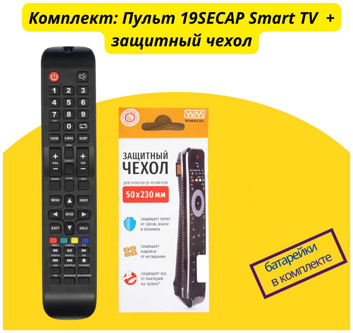 PduSpb Комплект 2 в 1: Пульт 19SECAP Smart TV (MTV-4228LTA2 VAR2) для Mystery / Digma / DENN / Econ / Harper / Nesons / Shivaki /Telefunken /+ защитный чехол