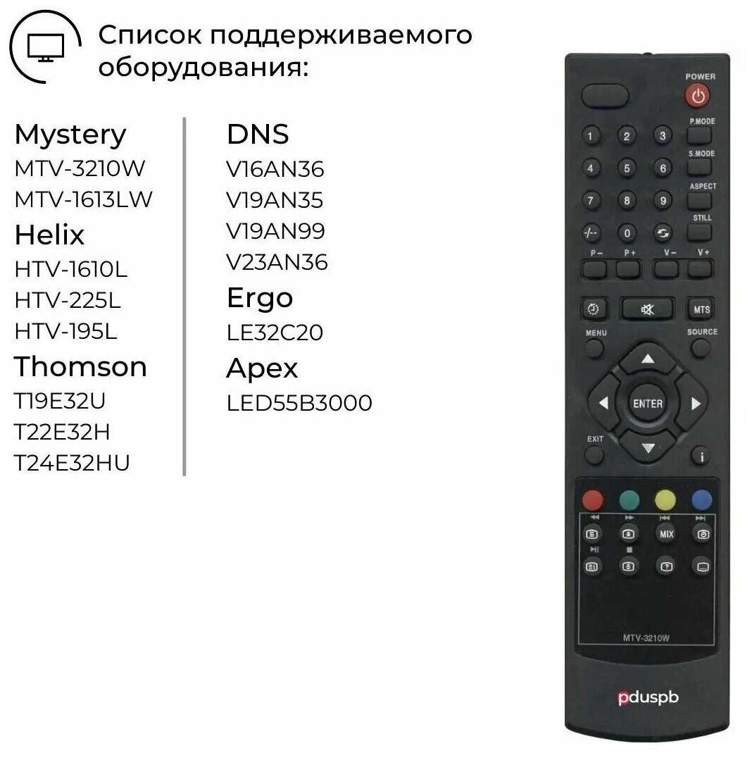 - назначение: для Пульт MTV-3210W подходит к телевизорам: Mystery MTV-1613LW