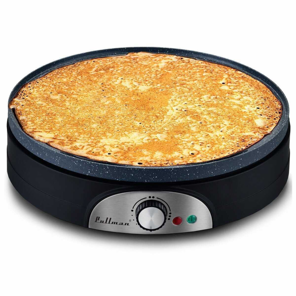 - + Отличная блиница. Можно готовить прям в столовой и не отвлекаться чем-то там на кухне пропуская беседу и тосты компании за столом. Блин большой, начинку в центр и заворачиваешь с четырёх сторон - получается лакомство до самого уголка заполненное начинкой.