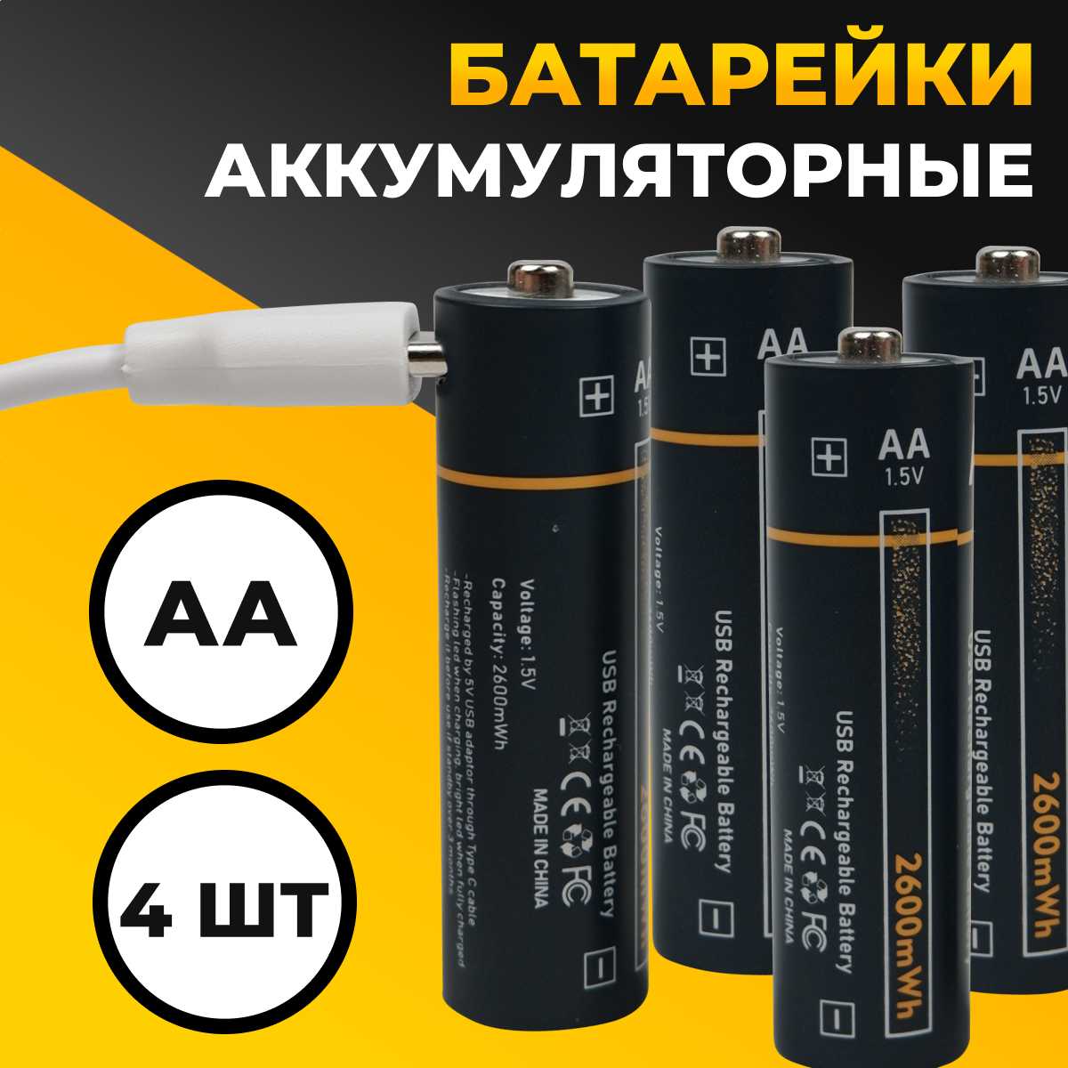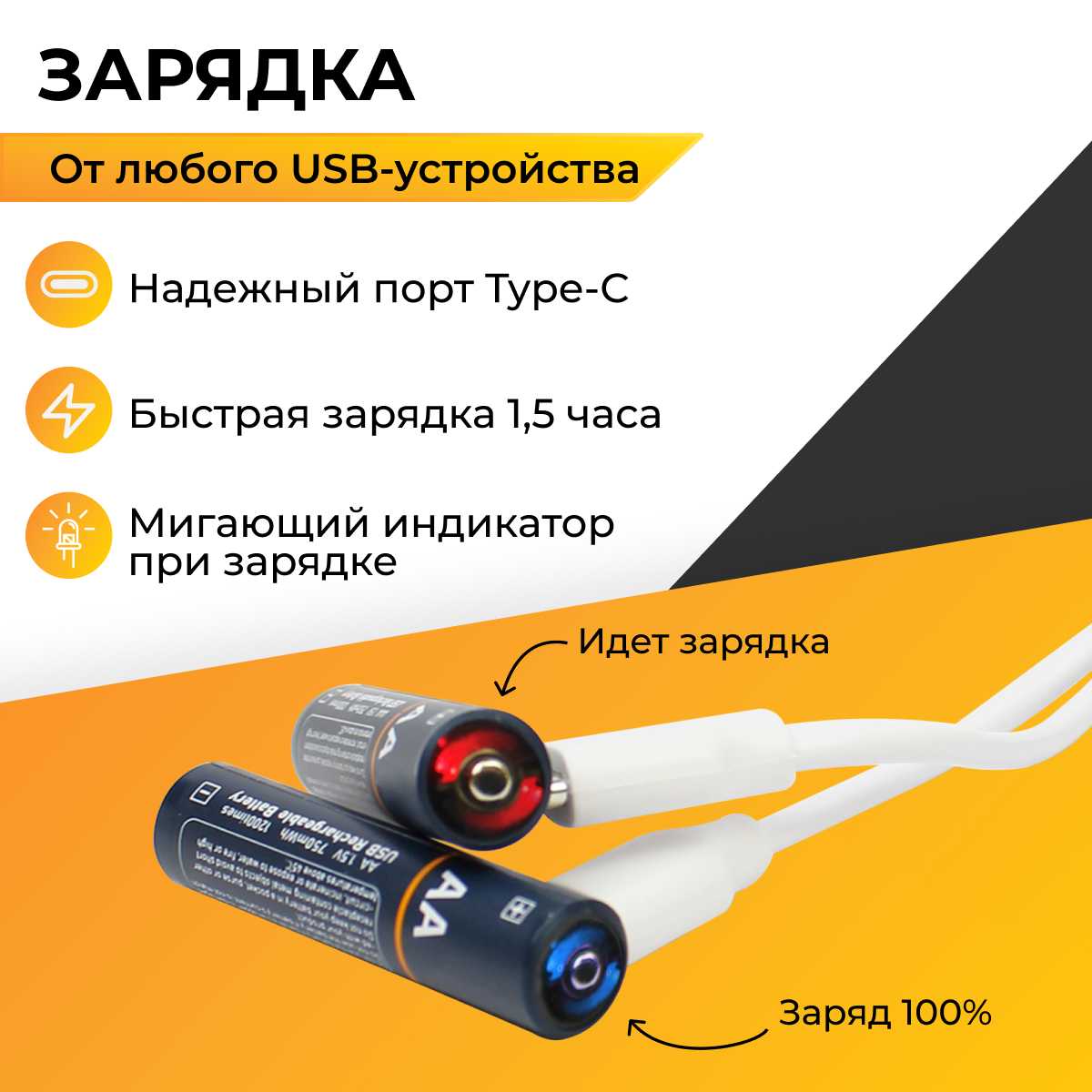- + Аккумуляторные батарейки вместе с кабелем Type-C в комплекте