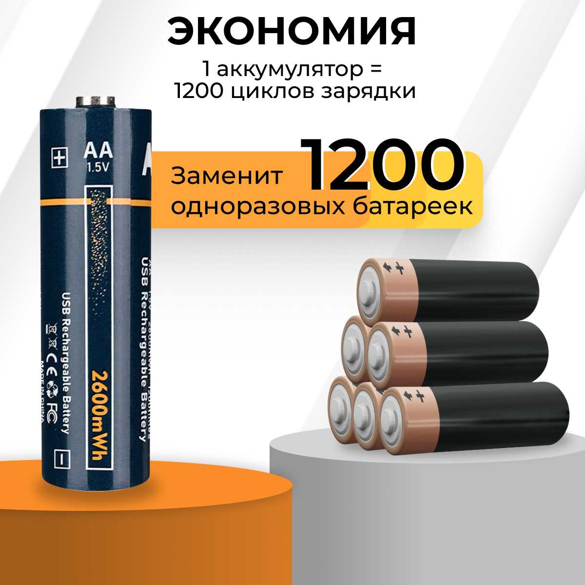 - Экономия по сравнению с одноразовыми батарейками: