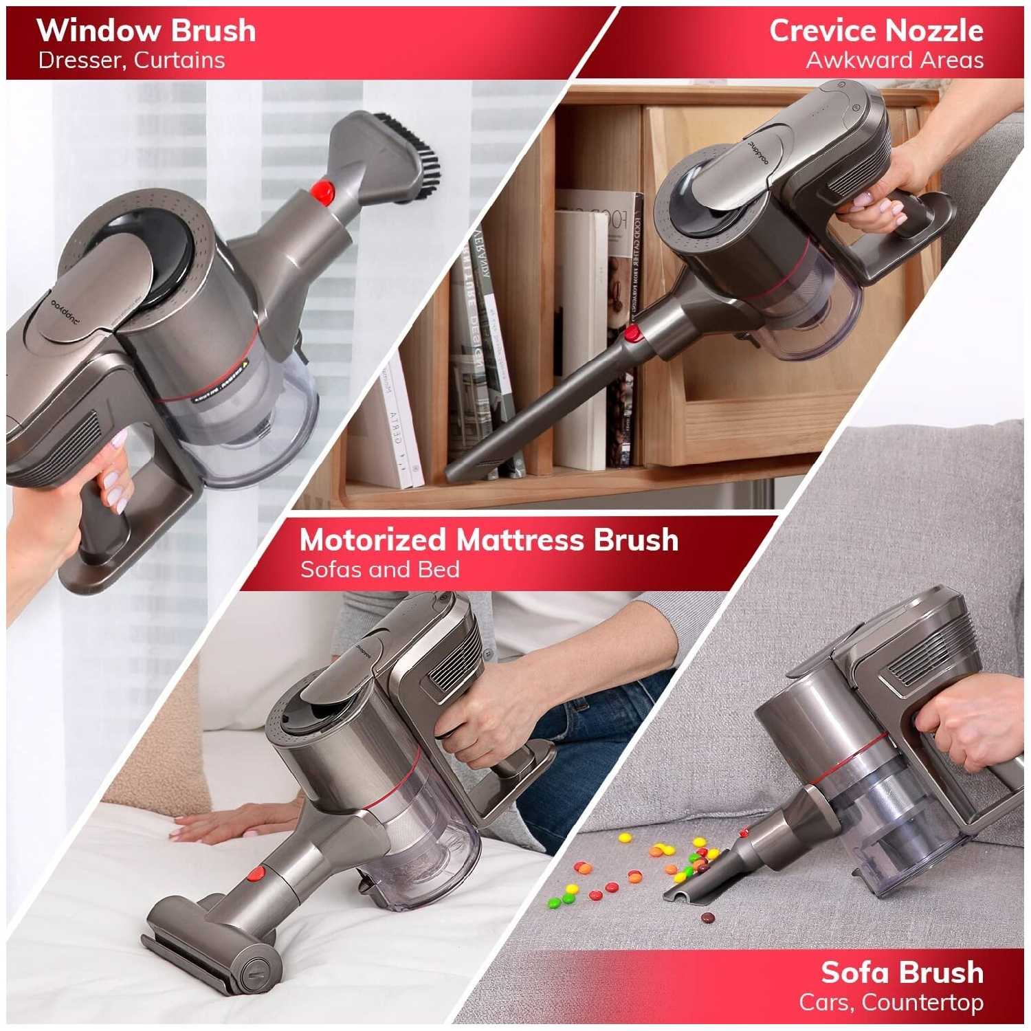 - + Достаточно мощный, на режиме турбо быстро убирает рассыпанный корм котов и опилки. Пылесосит хорошо маленькой щеткой матрасы. Очень понравилась подсветка...