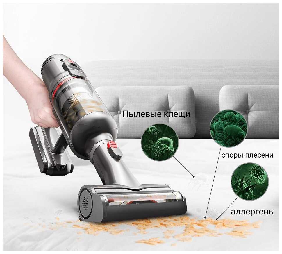 Благодаря оптимальному технологическому подходу удается экономить расход заряда батареи. Его достаточно для 70-ти минут автономной работы. Пылесборник сделан из прозрачного пластика, поэтому можно отслеживать его наполняемость. Наличие магнитного крепления облегчает установку плюс очистку. Подсветка на щетке обеспечивает безупречный результат. Если нужно провести влажную уборку, имеется для воды контейнер. Регулируется и мощность подачи воды, в зависимости от вида покрытия и степени загрязнений.