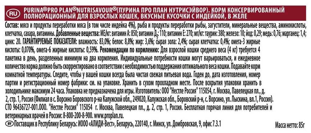 Характеристи Purina Pro Plan NutriSavour с индейкой (кусочки в желе)