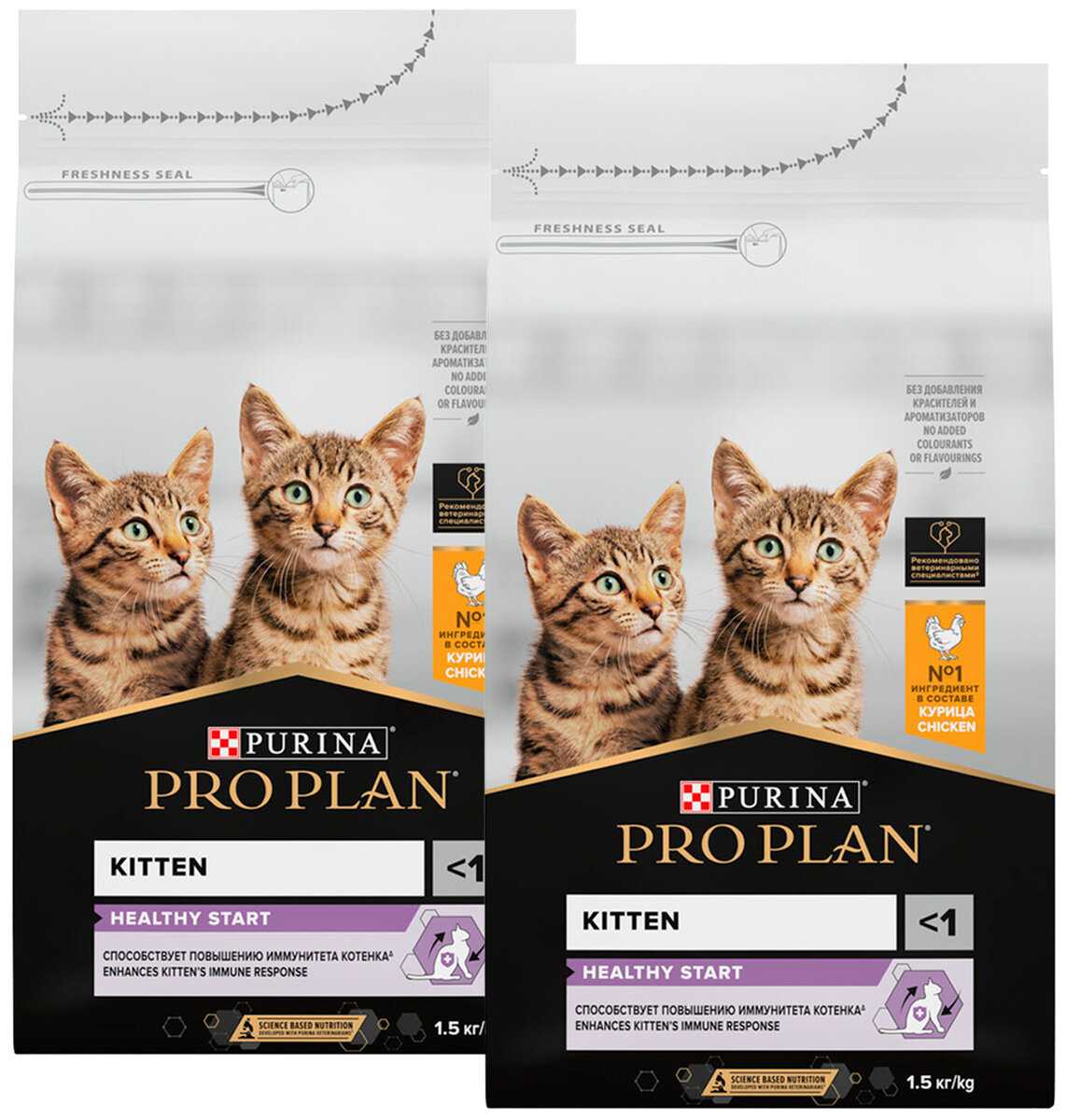 | Дополнительная информация : | переводите котенка на корм Pro Plan® JUNIOR в возрасте 3-4 недели, для более легкого поедания корм следует смешивать с водой, постепенно уменьшайте количество добавляемой для размачивания воды до того момента когда котенок сможет есть не размоченный корм, придерживайтесь 2-3 разового кормления или давайте корм по необходимости, для беременных кошек минимальная суточная норма 90 г/день для кормящих – минимальная суточная норма 180 г/ день или по необходимости |