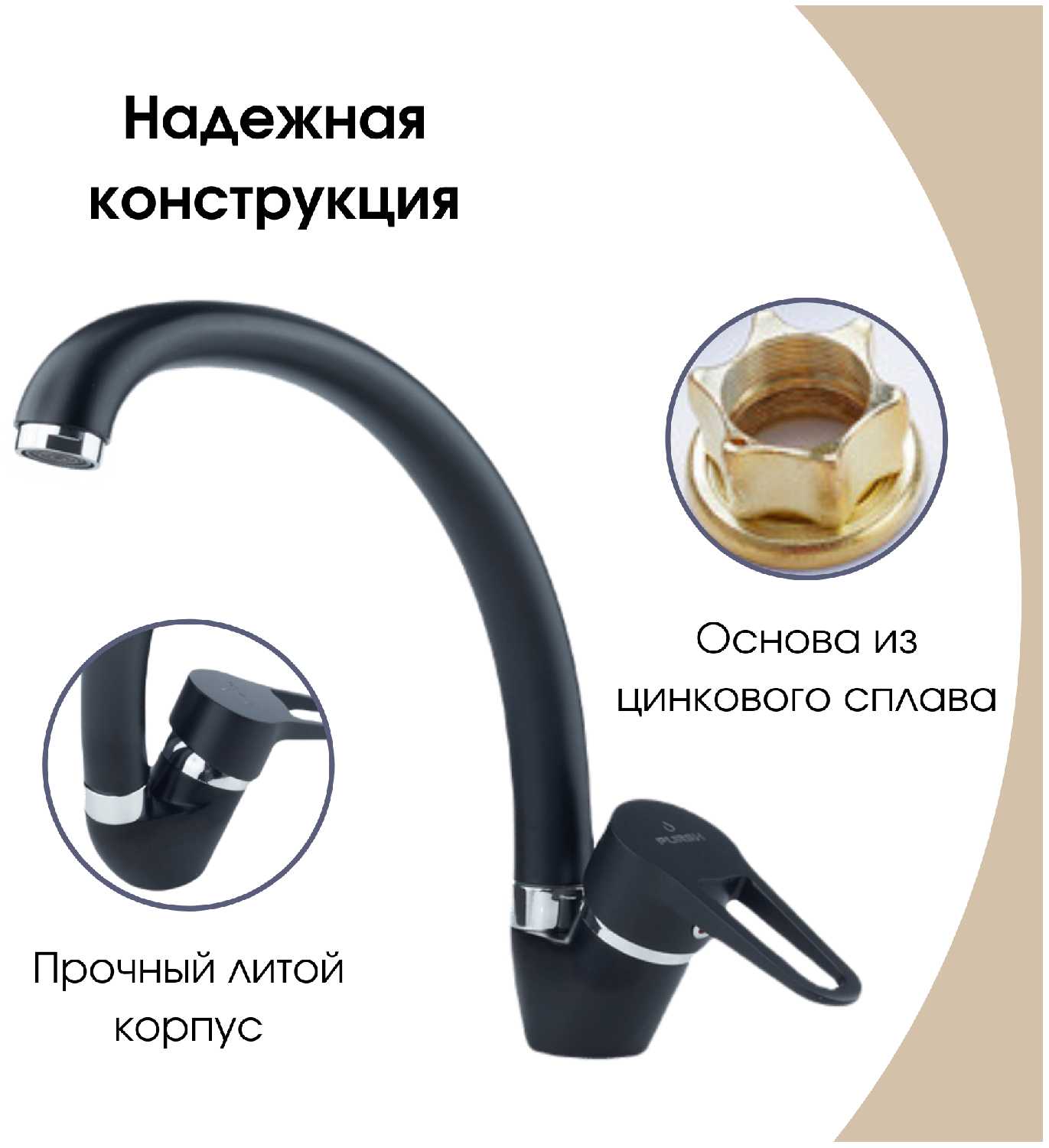 - + Качественный смеситель! Удобная установка на мойку! Соответствует описанию!