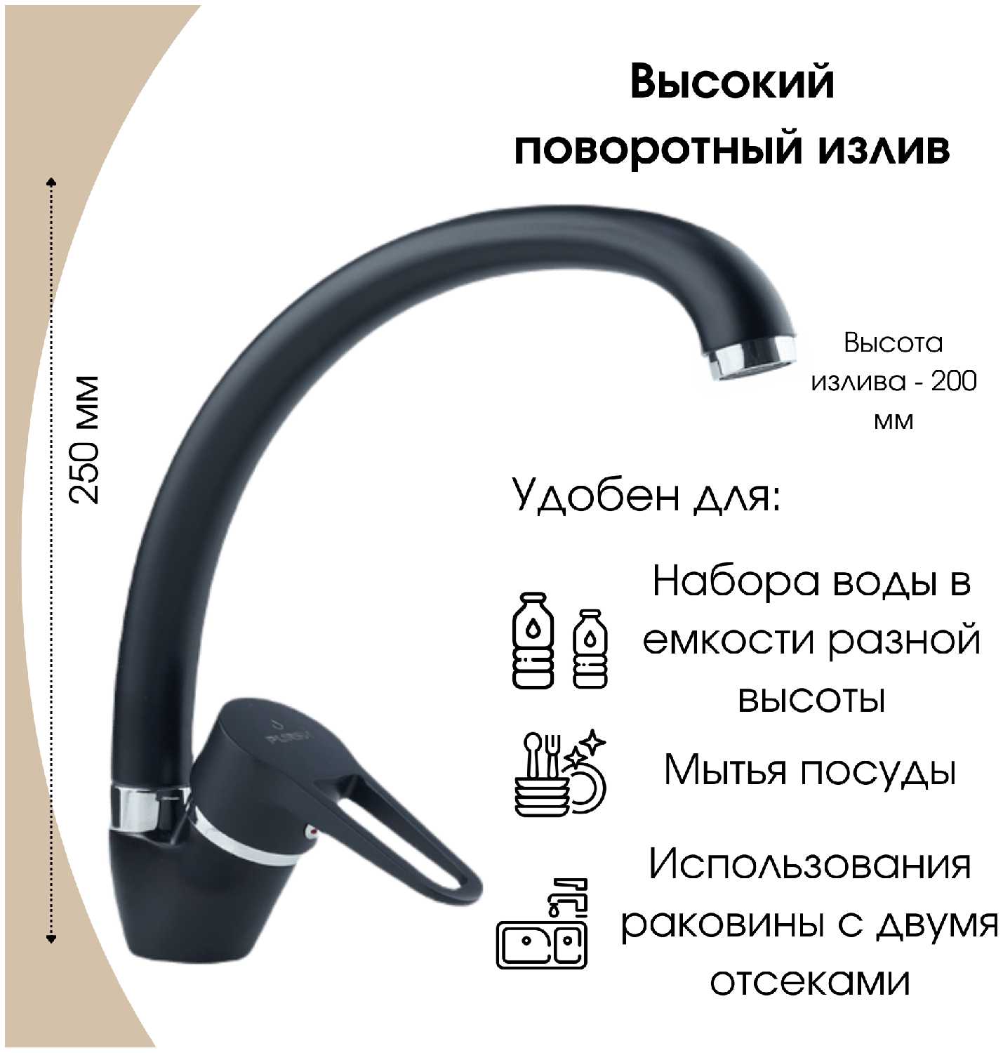 - назначение: для кухни (мойки)