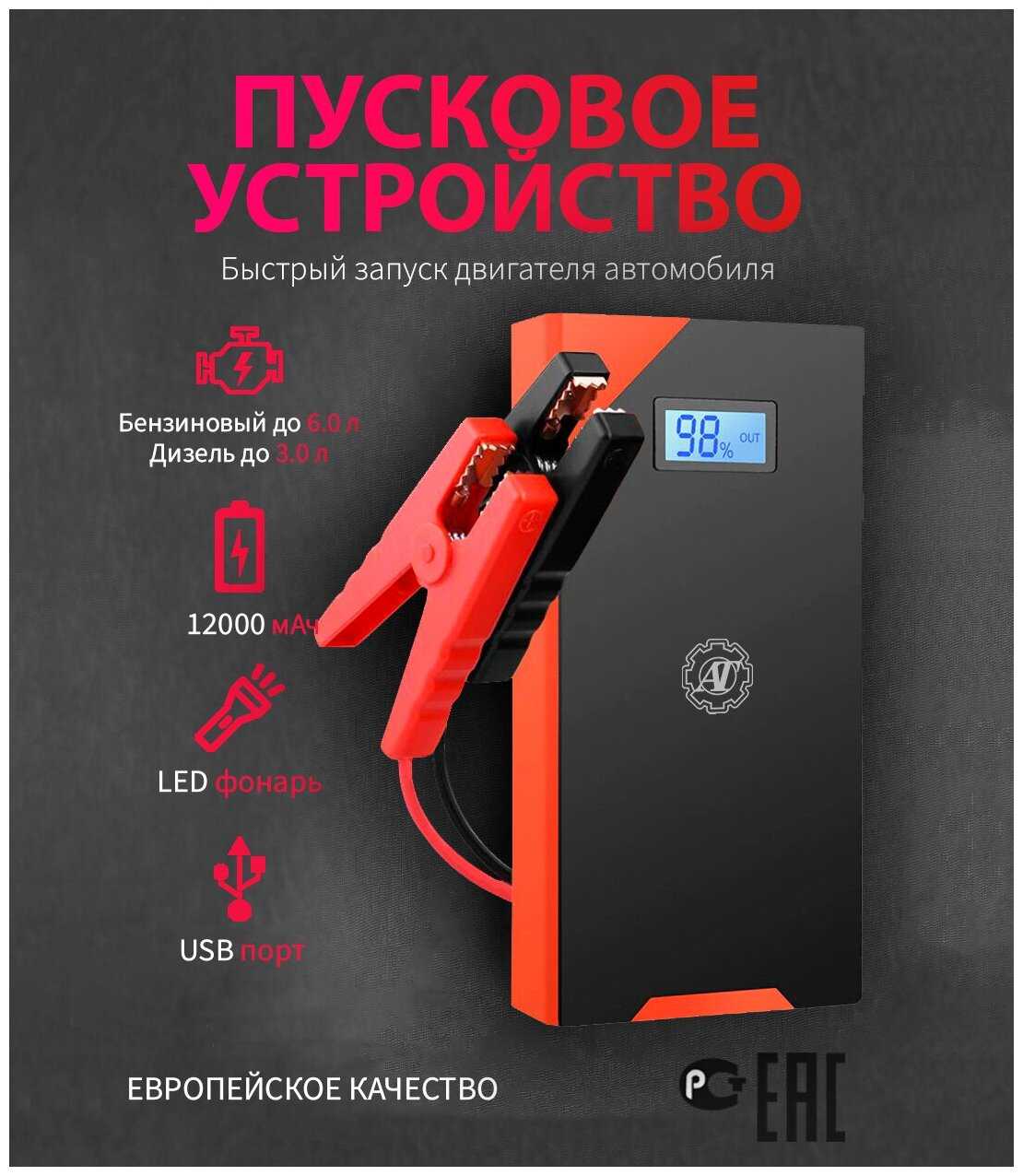 AT Портативное пуско-зарядное устройство с аккумулятором 12000 mAh / Пусковое устройство для автомобиля