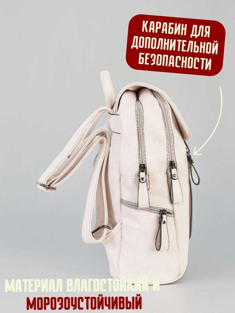 Рюкзак соответствует тому, что представлено в карточке товара. Качество пошива на высоте. Экокожа тактильно приятная, мягкая, подкладка так же хорошего качества. Внутри всё отсрочено, закреплено. Цвет соответствует заявленному. Всё, начиная от строчек и до фурнитуры, вызывает только положительные эмоции. Я довольна покупкой!