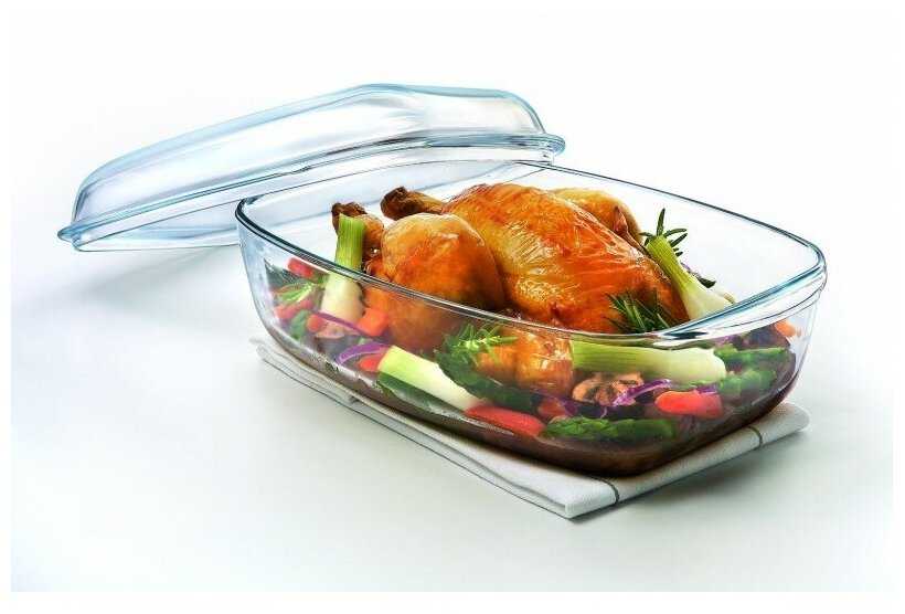 - Толстостенное боросиликатное стекло распределяет тепло равномерно, мясо и птица остаются сочными с хрустящей корочкой.