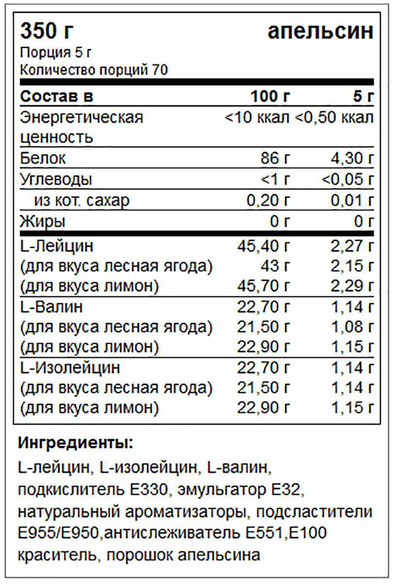 Основной ингредиент : | валин, изолейцин, лейцин |