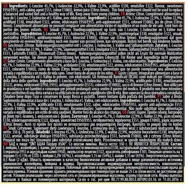 16 отзывов пользователей o QNT BCAA Powder 8500 ()