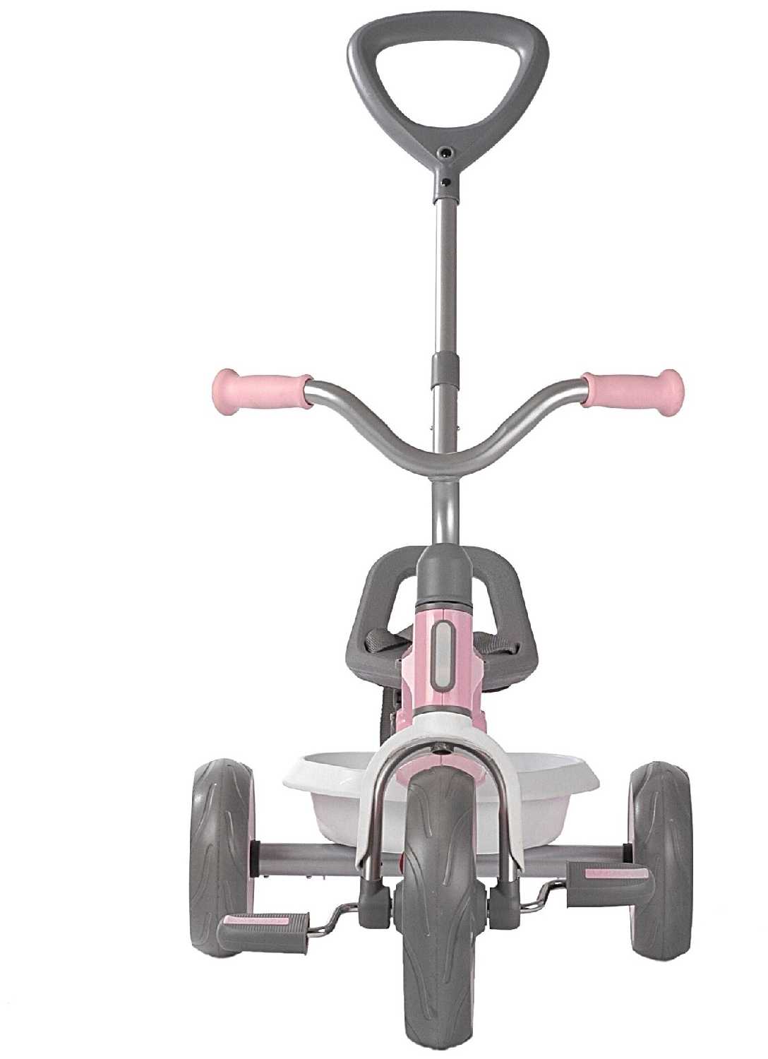ручка для родителей по сути бесполезна,тк управлять ей нет возможности,расположение педалей далеко от сидушки,нам уже 2,6 и мы с трудом достаём при росте 90-92,ноги достают до педалей но не хватает роста для прокручивания. Покупали на 2 года,подбирали по характеристикам,в итоге пол года на балконе стоит.к качеству претензий нет