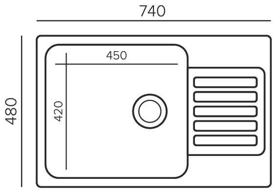 - размеры мойки: 50х74 см