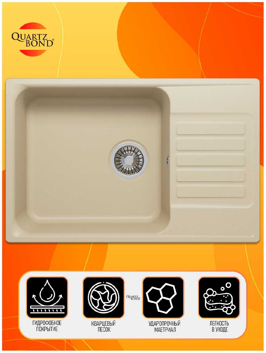 - материал: кварцевый искусственный камень