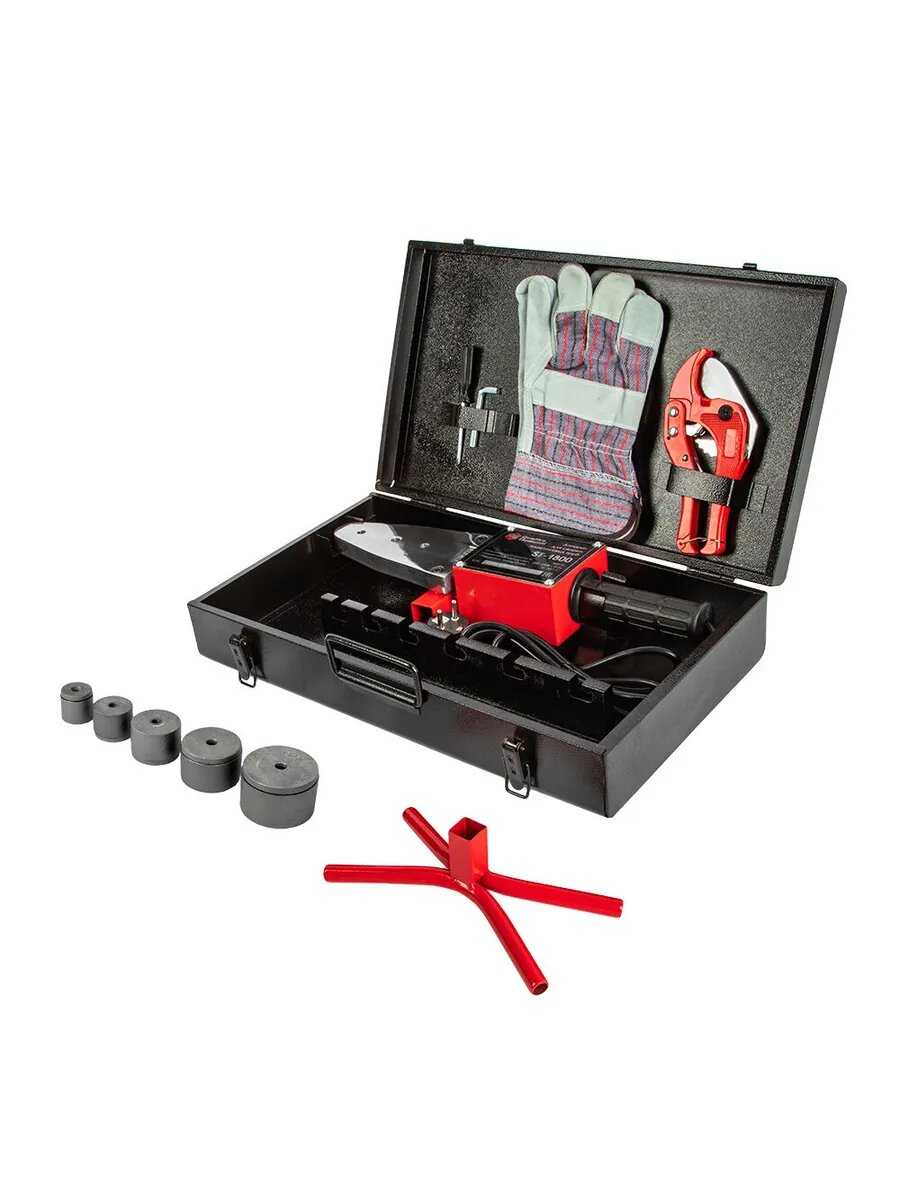 Базовая комплектация включает насадки на 20, 25, 32 мм, подставку и ключи, но перчатки и труборез часто отсутствуют, хотя указаны в описании. Ножницы для резки труб, если включены, режут криво и не подходят для диаметров свыше 25 мм. Пользователи докупают термостойкие перчатки и качественный труборез для комфортной работы.