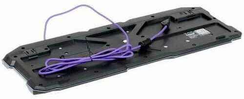 Подсветка имеет три статических цвета (красный, синий, фиолетовый) с регулировкой яркости, но распределена неравномерно: верхний ряд клавиш (F1-F12) и мультимедийные кнопки подсвечиваются слабо или не подсвечиваются вовсе. Символы на основных клавишах читаемы в темноте, однако функциональные клавиши без подсветки приходится запоминать из-за плохой видимости даже днём. Режим пульсации работает с паузами (пульс-пауза), что некоторые находят неприятным. -