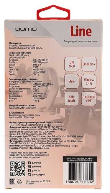 | Дополнительная информация : | разрешение сенсора: 800/1200/1600 DPI |